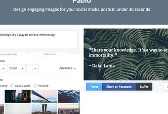 Pablo, un nouvel outil pour créer de belles images pour vos messages de médias sociaux en moins de 30 secondes. Vous pouvez utiliser Pablo dès le début, pas besoin de vous connecter ou de créer un compte. Juste créer rapidement des images incroyables en un rien de temps.