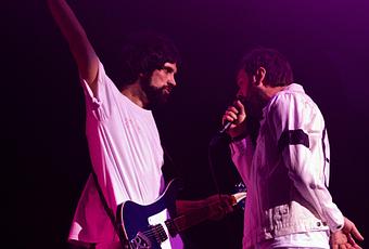 Au bout d'1h30 de set survolté, L.S.F. annonce le rappel. Lalalalaaaaa. On en veut plus ! Et c'est Tom et Sergio qui reviennent seuls. Un moment acoustique ? Une grande première pour les Kasabian - ou du moins, on ne les a jamais vus faire ça en live. Et bien il est temps de rectifier ça avec un Goodbye Kiss à deux voix et une guitare, joliment exécuté (et éclairé par des centaines de téléphones portables) avant de renvoyer la sauce avec 3 derniers morceaux. Comeback Kid fait son petit effet mais c'est Vlad the Impaler qui va remporter la palme du WTF Kasabianesque. Pour cette dernière date continentale, le groupe a ramené Noel Fielding dans ses bagages. Ce trublion fait quelques apparitions avec Kasabian depuis la sortie du clip de Vlad the Impaler où il joue le rôle titre. Malgré le nombre de concerts des Kasabian qu'on a pu faire par le passé, c'est la première fois qu'on a droit à avoir Vlad en chair et en os alors, forcément l'hystérie est à son comble. Et ce n'est pas le désormais classique, Fire, qui va calmer ça...
