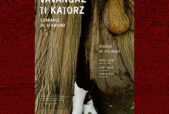 J’ai accompagné la fin de résidence de création de Vavangaz Ti Katorz, projet qui chemine à son rythme tranquille depuis toutes ces années (je vous en parlais déjà là) jusqu’à sa première vraie représentation en cet automne 2017… Incubé à la pépinière de la scène nationale d’Aubusson, il s’est finalement joué le 3 novembre sur le beau plateau de la Communauté de Communes de Bourganeuf / Royère-de-Vassivière, en Creuse. Un objet étrange et envoûtant porté par la Cie Zafèr K, concert théâtralisé où Nelly Cazal incarne la clocharde céleste Ti Katorz, dans un parlé chanté en créole réunionnais mais dont la musicalité est universelle, accompagnée de main(s) de maître(s) par Jérôme Cury aux percussions et Gaël Ascal à la contrebasse — qui créent un ilot de musique tantôt jazz tantôt chamanique tantôt contemporaine mais jamais folklorique elle non plus…