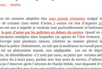 je ne vais pas me répéter encore et encore à chaque fois que se produit un drame qui démontre assez à quel point le port d’arme par des agents des forces de l’ordre hors service pose problème. j’ai déjà aligné mes arguments ici :