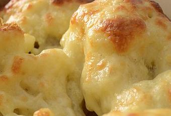 Mettre le chou fleur dans un plat à gratin, ajouter la béchamel, parsemer de fromage râpé.