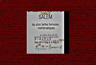 Si comme moi vous avez eu un jour l'intention d'entamer des études scientifiques et que la vie en a décidé autrement, si comme moi il vous rester un amour nostalgique des mathématiques et surtout une incompréhension quasi totale de certaines notions qui se soient noyées dans le brune de vos souvenirs, si comme moi, il vous reste de bagues souvenirs des cours de mathématiques où ils était question de logarithmes, de fonctions, de dérivées, ou de sinus et cosinus, ou de nombres réels ou irrationnels (je ne demande encore aujourd'hui comment un nombre peut-être irrationnel), je vous conseille de feuilleter le petit livre de Lionel SALEM, Frédéric TESTARD et Coralie SALEM paru en 1990 chez les éditions CASSINI - collection Le Sel et le Fer - sous le titre alléchant: LES PLUS BELLES FORMULES MATHÉMATIQUES ".