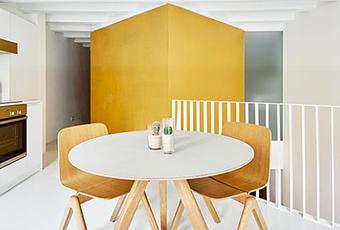 L’architecte espagnol Raúl Sánchez, fondateur de l’agence d’architecture RAS, a été chargé par ses clients de fusionner deux logements pour créer un duplex à Barcelone. Dans un état de délabrement total, l’architecte a du repartir d’une page blanche pour créer le « Duplex Tibbaut« . L’originalité de cette rénovation réside dans ces deux volumes carrés déposés au beau milieu de l’espace qui dictent les circulations et s’imposent comme les éléments centraux de l’appartement. Ce que nous avons aimé et nos conseils déco juste après la visite en images :