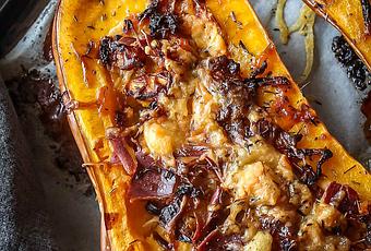Coupez le chèvre en tranches. - Garnir le butternut :