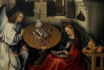 Dans les Annonciations, une bougie éteinte représente habituellement l’attente de Jésus, la flamme s’allumant seulement au moment de la naissance.