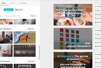 En analysant le contenu de votre article de blog, Lumen5 peut automatiquement créer un story-board vidéo pour vous. Il vous recommande même des images et des vidéos pertinentes, que vous pouvez facilement utiliser en les faisant glisser et en les déposant sur les images respectives.