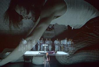 Succès complet pour l'Opéra de Francfort qui s'est donné les moyens de cette grande réussite en sollicitant le talent d'Arnulf Hermann dont la pièce de théâtre musical Wasser avait fortement impressionné le public et avait été unanimement célébrée par la critique à la biennale de Munich en 2012. Kazushi Ono, coutumier des créations musicales avant-gardistes, rend avec précision la partition de Hermann. Le metteur en scène Johannes Erath, familier du travail sur les productions contemporaines comme le Make no Noise de Miroslav Srnka ou du le paradise reloaded de Peter Eötvös, réalise ici une mise en scène magistrale, psychologiquement très intense, qui donne corps et substance visuelle à la musique et au livret avec souvent des jeux vidéastres subtils de projections à même les parois du décor ou sur des rideaux de scènes transparents. La distribution est à l'aune des quaités de la production: Björn Bürger tient avec brio le rôle du locataire, Georg, un rôle qui demande de l'endurance avec sa présence continuelle en plateau et exige de réaliser des prouesses acrobatiques quand le sol de verre opaque et lumineux se met à s'élever à la verticale, ce qui oblige le chanteur soutenu par des filins de jouer et de chanter à l'horizontale. Le talent de l'acteur doit égaler celui du chanteur pour rendre compte des transformations psychiques qui mènent à la folie suicidaire, et physiques dans l'identification avec Johanna, la locataire précédente. Anja Petersen, qui fait ici sa grande entrée réussie à l'Opéra de Francfort, incarne le spectre fantasmé de Johanna avec une force de conviction poignante. Un moment inquiétant de la mise en scène aligne des choristes déguisés en Johanna et porteurs de moustaches, qui donnent à penser que l'appartement est maudit et que, de locataire en locataire, les suicides s'y produisent à répétition.