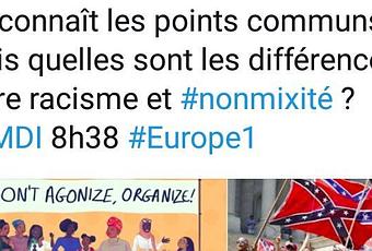 Il ne m’était pas apparu que le Nyansapo festival ait commis des crimes de guerre en masse, mais bon… Puisque ce Monsieur le dit, qu’il y a des points communs (que lui seul connait ?). Pourtant, de mon point de vue, les centaines de milliers de morts de la guerre de Sécession doivent se retourner dans leur tombe… Je ferai en outre respectueusement remarquer à cet innocent animateur radio que j’aurais eu tendance quant à moi, du haut de ma tour d’ivoire (rires), dans ma grande innocence, à trouver d’avantage de points communs entre le mouvement sudiste, mu par le suprémacisme blanc, et leur prolongement dans le présent que sont les Alt-right, et Suavelos, plutôt qu’avec une association antiraciste pratiquant occasionnellement la non-mixité à des fins militantes, mais bon… je ne suis que moi, n’est-ce pas.