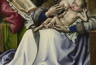 - Lorsque l’Annonciation est en cours (Mérode), c’est l’inverse : le monde baigne encore dans l’Ancien Testament et la table, avec ses seize côtés, dévoile aux seize prophètes ce qui va immédiatement advenir : le Nouveau Testament et l’Ere sous la Grâce.