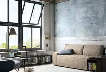 C’est en étudiant de près les couleurs, les nuances et les textures vieillies qu’ils ont pu concevoir cette gamme de revêtements muraux, originaux et magnifiques. Les dalles sont disponibles en six modèles, chacun basé sur un type différent de bâtiment vieillissant: Palazzo, Cascina, Masseria, Villa, Castello et Casale. Ils y incorporent une variété d’effets, de la peinture fanée des fresques traditionnelles à la maçonnerie marquée de rouille et au plâtre taché d’humidité. La palette de couleurs se décline dans des tons pâles de blanc et de gris et des tons délavés de bleu et de brun.