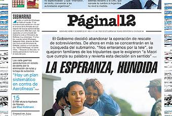 Le gouvernement parle des quarante-quatre sous-mariniers de l'équipage comme de héros mais, paradoxalement, il ne prend aucune disposition pour leur rendre les honneurs qui leur sont dus. Les drapeaux ne sont toujours pas mis en berne. Le deuil national n'est pas déclaré. Aucune cérémonie religieuse ou militaire n'est encore annoncée. Aucune décoration n'a été décrétée. Et à peu près au moment où le porte-parole de la Marine à Mar del Plata s'apprêtait à faire sa sinistre déclaration, la Casa Rosada publiait des tweets triomphalistes pour fêter la présidence argentine du G20. Le gouvernement attendrait d'avoir une photo du bâtiment perdu pour reconnaître officiellement la mort de l'équipage et en attendant cette hypothétique photos, il laisse les familles démunies, obligées de faire face seules à tout ce qu'une disparition implique de complexité émotionnelle et juridique. Espérons que tant que les décès ne sont pas déclarés, chaque famille continuera à toucher la solde du disparu et qu'au ministère de la Défense, on cherche pas à retarder le moment d'attribuer et de verser aux familles les pensions qui leur sont dues.