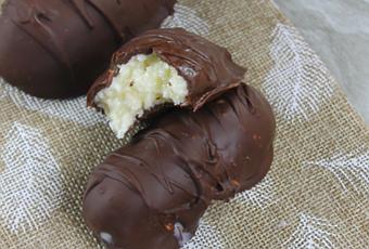 Seulement une fois le chocolat fondu et légèrement refroidit, sortez les Nounty du congélateur.