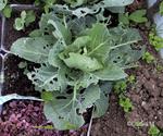 Les limaces ont particulièrement apprécié mes choux. J’ai beau les débusquer, chaque jour il y en a de nouveaux trous dans mes légumes. L’une des limaces avait carrément élu domicile dans ce chou. Elle a bien travaillé à le denteler.
