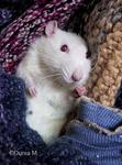 Prado est encore si K.O, qu’il reste sur le dos sans bouger. Ce n’est absolument pas normal pour un rat. A côté de lui, j’ai placé une bouteille de sirop pleine d’eau chaude. Je l’ai un peu découvert pour le photographier, mais en réalité il n’a que les moustaches et les yeux qui dépassent de la couverture afin que la température de son corps reste stable.