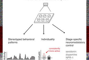 Caenorhabditis elegans pris individuellement au cours de leurs trajectoires complètes de développement et par la quantification de leur comportement à une très fine résolution spatio-temporelle. Ces mesures révèlent des trajectoires de comportements naturels reproductibles et caractéristiques pour chaque stade de développement. La dopamine, la sérotonine, le récepteur neuropeptidique NPR-1, et le peptide TFG-β DAF-7 ont chacun des effets spécifiques à l’âge sur les comportements moteurs de trajectoire, impliquant l’existence d’un programme de modulation temporelle contrôlé des neuromodulateurs. De plus, une fraction de sujets au sein des populations isogéniques, élevés en environnement contrôlé, présentent des tendances comportementales non-génétiques cohérentes qui persistent au cours du développement. Plusieurs systèmes neuromodulatoires agissent sur le degré d’individualité non-génétique en l'augmentant ou en la diminuant, avec pour but de façonner des schémas comportementaux au sein de la population. Shay Stem, et al, dans Cell, publication en ligne en avant-première, 30 novembre 2017