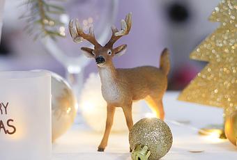 Sur la table , une simple nappe blanche avec quelques décorations posées par ci par là.Des petites boules dorées, des sapins à paillettes , une guirlande lumineuse...Mais aussi un cerf et son petit pour rappeler le côté naturel.J'avais craqué sur de jolies assiettes et serviettes chez Monoprix qui font très bien l'affaire.Voilà de quoi passer un bon moment ensemble , en famille !
