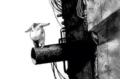 (extrait de "Lumikko" de Pasi Ilmari JÄÄSKELÄINEN, éditions 10/18; illustration extraite de "Blast" de Manu LARCENET)