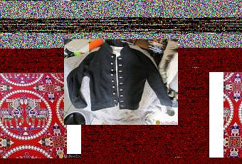 Veste d’exercice en drap de laine bleu foncé sans ornements, boutons demi-boules en laitons, couture entièrement machine, avec surpiqûres main en lin blanc pour les boutonnières, doublée en coton blanc, avec poche intérieur, coupe en deux pièces pour le dos, un raccord puis le devant, col de 4cm de haut, manches en une pièce, quelques traces de transpirations, taillé dans les années 2000 par un tailleur à la retraite.Taille XL ou