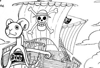 Donc pour ce dernier sujet, il me fallait un univers marin, avec des navires et j'ai pensé à l'univers des pirates de One Piece, et le bateau de Luffy.