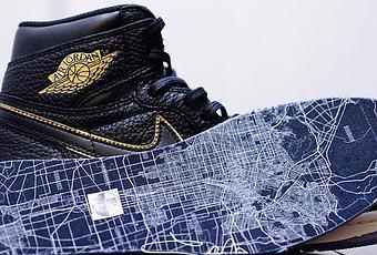 Jordan Brand nous présente une Air Jordan 1 Los Angeles qui devrait sortir lors du prochain NBA All-Star Weekend qui débutera le 18 février 2018. Le modèle est doté d’une empeigne en cuir grainé noire accompagnée par des touches dorées sur le logo Wings ainsi que sur le Swoosh. Cette Air Jordan est complétée par une semelle intermédiaire blanche et par une semelle bleue translucide. Comme sur la Air Jordan 9, la semelle intérieure de la chaussure est décorée par la carte de Los Angeles.