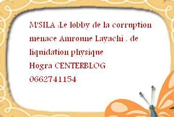 M'SILA :Le lobby de la corruption menace Amroune Layachi , de liquidation physique En date du 10 décembre 2017 et à 14h00, je me suis dirigé vers le siège du TRIBUNALE de M’SILA , précisément au service courrier et dispatching pour se renseigner sur les suites de ma plainte que j’ai formulé et déposé en date du 04 décembre 2017 au près du monsieur le procureur général du tribunal de m’sila. En ce jour du dépôt de ma plainte, j’étais reçu par monsieur l’assistant du procureur général ou son adjoint, à qui j’ai remis ma plainte en ce jour du 04 décembre ,en lui expliquant par la même occasion sur les motifs de ma plainte ,le risque que j’encoure et en lui fournissant toutes mes preuves. Monsieur l’assistant du procureur général a bien reçu ma plainte mais a refusé de l’inscrire au registre et a aussi refusé d’émettre le visas du courrier arrivé ou accusant réception sur la deuxième copie de cette plainte .En discutant avec monsieur l’assistant du procureur de la république ,j’ai lui fait savoir et souligner que j’ai été victime au paravent de menaces de mort et en ce moment je traverse des moments très difficile dans ma vie et ma vie familiale et que je vis sous pression à cause des harcèlements et menaces de mort graves formulées par un lobby de corrompus d’administrateurs, de service de sécurité et judiciaire de m’sila qui me cernent de partout et érigent un embargo autour de moi ,comme je le lui souligné en insistant de prendre ma plainte au sérieux et de donner suite à mes craintes vis-à-vis de ces menaces de mort car c’est une question de vie ou de mort ,pas plus grave que ça. Malheureusement après sept jours de mon dépôt de plainte sans accuse de réception de la part de l’administration de tribunal, et après avoir contacter la responsable du “service courrier “, cette dernière me faits savoir que ma plainte est introuvable, devant cet état des choses de négligence volontaire ou involontaire de ce service ou sur ordre de son responsable hiérarchique , je lui demander de se renseigner auprès de Monsieur l’assistant du procureur général sur le sort de ma plainte ,soi-disant introuvable ,qui a été déposée à main propre le 04 décembre 2017 . Quelques minutes après, je suis revenu auprès du bureau du service courriers, où j’ai trouvé toujours la dame faisant semblant dechercher ma plainte ,à la fin ,elle m’a demandé de revenir la semaine prochaine peut être qu’elle trouvera ma plainte. Donc les signes, agissements et actes de censures sur mes plaintes sont devenus Claires et évidentes comme d’autres adressées aux hautes autorités depuis février 2001 à ce jour ;donc ce black-out sur mes soucis et plaintes à encourager des gens à me menacer de mort et surement si les autorités compétentes ne feront rien et égarent mes plaintes et étouffent mes cris ,ces gens je disaient vont passer à l’acte comme la mafia politico-financière et je paierais ca par ma vie. A cet effet, je demande à monsieur le ministre de la justice gardien des sceaux d’ouvrir une enquête sérieuse au sujet de cette affaire et je porte l’entière responsabilité aux autorités concernées en cas d’actes de vengeance ou représailles contre ma personne ou autre membre de ma famille, comme je porte connaissance à l’opinion public national et international que ma vie et celle de ma famille est en danger, et je ne peux divulguer quoique ce soit pour le moment pour ne pas gêné le cours de l’enquête en cas de son ouverture. AMROUNE LAYACHI Activiste independent Mobile :06.62.74.11.54