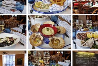 De larges ardoises présentent chaque jour les suggestions du Chef et le menu « Retour de Pêche » en fonction des arrivages quotidiens. A la carte, on retrouve bien sûr des fruits de mer d’une fraîcheur exceptionnelle, et des classiques de la cuisine bistrotière côté mer comme le Merlan de ligne Colbert ou l’Aïoli de cabillaud.