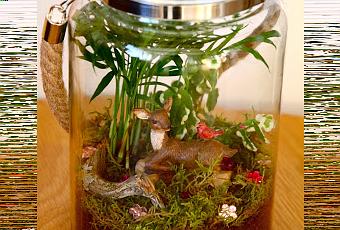 Pour mon jardin miniature, j'ai utilisé un bocal en verre facile à installer partout et j'ai choisi des plantes qui rappellent la forêt : une haute pour symboliser les arbres et une basse pour le couvre-sol ...