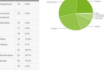 Avec ce graphique, on voit bien qu’Android Oreo a seulement une part de marché de 0,5% et que sa progression est vraiment lente… alors qu’Android Oreo est disponible depuis août dernier ! Cela montre également que les grands constructeurs de smartphones se moquent de cette mise à jour assez importante ou prennent tout temps pour la proposer à leurs utilisateurs ! Samsung, grand constructeur, qui a pourtant un grand nombre d’employés, ne propose toujours pas la version Android Oreo à ses utilisateurs actuels, même si une liste de smartphones qui seront mis à jour à été publiée…Ça avance très lentement…