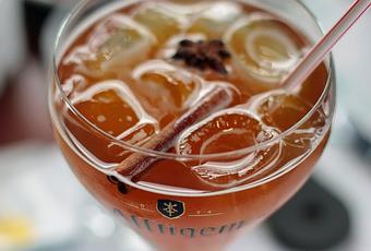 Mon mari a choisi l'ananas frais (2 beaux quarts) et moi j'ai pris un dessert à mon prénom la gaufre La petite Sophie servie avec de la chantilly et du chocolat chaud maison. Notre serveuse m'avait promis que la gaufre était tout légère. Je vous le confirme : c'est vrai ! Après le repas, les enfants sont allés faire un tour dans l'aire de jeu à l'intérieur du restaurant où il y a un mini baby-foot. Et nous avons profité d'un moment tranquille en finissant notre dessert avant de repartir. A la fin du repas, notre serveuse nous a proposé une barbe à papa pour les enfants, je crois que chez Léon c'est un peu leur petit paradis... Et je pense que nous retournerons très certainement passer un moment en famille pour un déjeuner gourmand qui nous a tous plu.Si vous n'avez pas l'occasion de tester le cocktail à la bière de Noël Affligem, voici la recette !