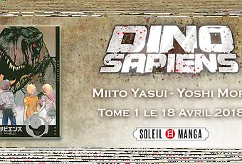 Soleil Manga annonce l’arrivée à son catalogue du manga Dino-Sapiens de Yoshi MORI et Miito YASUI. Pré-publié entre 2015 et 2016 dans le Weekly Young Magazine des éditions Kôdansha, le titre compte deux volumes reliés parus au Japon. « Les dinosaures sont de retour ! L’Homme est-il prêt à perdre sa place de prédateur ultime sans lutter …