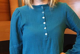J'ai longtemps hésité entre vert sapin et bleu canard. Comme la double gaze était à petit prix, j'ai prix les deux, non en fait j'en ai pris trois...Le canard est devenu une blouse, le sapin une jupe qui tourne.