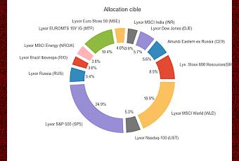 Performance de l'allocation cible mise à jour mensuellement par rapport au MSCI WLD ( par proxy avec l'etf: Lyxor WLD)