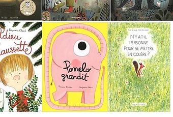 "Adieu Chaussette" de Benjamin CHAUD ou pour plus jeune un de ses Pomelo comme "Pomelo grandit" écrit par Ramona BADESCU