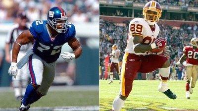 En attendant le match d'ouverture de la saison, les Géants et les Skins s'affrontent sur le plan vestimentaire... Nick T: L'habit actuel des Giants est médiocre de bien des façons: les pants gris sont très gris, le logo est laid et les numéros ont l'air cheap. L'ancien n'était pas un des plus beaux de la NFL mais il était mieux que ça. Pour ce qui est des Skins, même si on ne parle pas d'un habit splendide, il a le mérite d'être classique et original. Le bourgogne "peau rouge" et le jaune sont rarement associés et sont des couleurs uniques dans le sport professionnel. Le logo de l'indien est anachronique et controversé mais what the hell... On y va pour les Skins.
