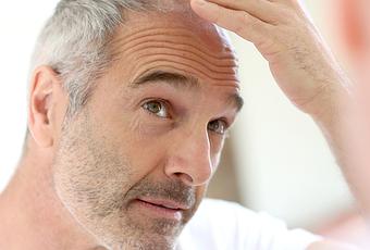 Les hommes font face aux cheveux fins et clairsemés