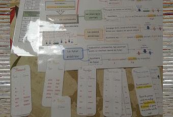 La grande carte des temps du mode inficatif était parfaite. Les temps composés présentés mais aussi les temps simples grâce aux auxiliaires conjugués. Puis la flèche du temps Montessori a été abordée doucement.