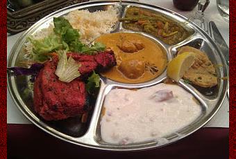 Autre spécialité, le Thali qui est un grand plateau composant un repas complet pour 17 € (le soir, mais il est à 10 € le midi). Sa composition peut varier. A titre indicatif il était ce soir composé d'un poulet Korma au lait de coco et cannelle, de concombre au yaourt, d'une galette de pomme de terre, d'épinards au curry et fromage, d'un riz basmati au safran…