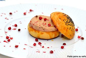 L'année 2017 s'achève et je vous souhaite une année 2018 pleine de joie et de gourmandises.Pour votre menu de la St-Sylvestre et pas que, d'ailleurs, je vous propose des petits pains au safran.Le safran est l'épice la plus chère au monde mais quelques pistils suffisent pour donner à votre plat une saveur goûtée nulle part ailleurs.Je cuisine assez régulièrement le safran venu d'Iran, d'Afghanistan ou du Maroc.Aujourd'hui, je vous propose un safran français et bio.Le safran est aujourd'hui cultivé dans plusieurs régions de France, dont les Ardennes, où Delphine Liégeois a monté une exploitation. En mai 2016, l'exploitation de Delphine, jusqu'alors cultivée de manière naturelle, passe à l'Agriculture Biologique. Elle reçoit la certification de l'organisme de contrôle Ecocert.En plus de son safran, Delphine a développé de nombreux produits ( douceurs sucrées, salées, alcools..)qu'elle commercialise sur sa boutique en ligne ici et à des prix (très) accessibles.Me concernant, et pour changer des plats, tajines et crèmes au safran, j'ai voulu tester cette fois-ci le pain.Pour une 1ère fois, j'ai testé une recette un peu briochée. C'est très bon.J'ai suivi le conseil de Delphine et j'ai mis mes pistils à tremper toute la nuit dans de l'eau.J'ai accompagné ces petits pains de tranches de foie gras de la Maison Monfort.Je n'ai pas mis d'autres garnitures car le foie gras utilisé est riche en goût. En effet, pour ces fêtes de fin d’année, la Maison Montfort propose, trois belles créations, invitant au voyage et à la découverte de nouvelles saveurs. J'ai utilisé la première création, une recette inspirée du Japon, un foie gras entier, associé à des baies de Sansho, avec une pointe de gingembre. Nous finissons l'année sur une note pleine de gourmandise.Je vous remercie toutes et tous pour votre fidélité et vous dis à l'année prochaine pour de nouvelles aventures culinaires et peut-être pas que ....