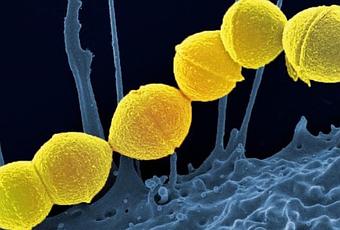 Les streptocoques du groupe A (visuel), sont les principaux responsables des infections bactériennes des voies respiratoires supérieures, des infections généralement bénignes mais qui motivent encore de fréquentes prescriptions d'antibiotiques. Les chercheurs de la Georgia Tech appellent aujourd'hui à développer des alternatives aux antibiotiques pour traiter ces infections courantes et réserver les antibiotiques aux infections plus sévères. Plusieurs alternatives sont ici discutées, dont les agents " anti-virulence bactérienne " qui permettraient d'affaiblir les bactéries et de laisser ensuite notre système immunitaire " s'en débarrasser ".