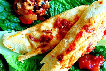 On trempe les tortillas dans de la salsa (ou dans une "simple" sauce tomate).