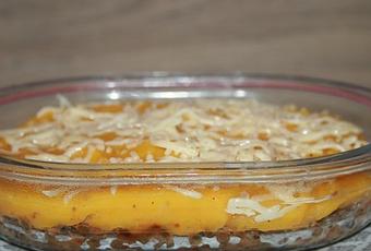Dans un plat a gratin mettre les lentilles, recouvrir d'une couche de purée, parsemer de fromage rapé et cuire au four (préchauffé) 180° pendant 20 à 25 min.