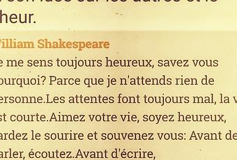Pour bien commencer l'année, et en remerciant Shakespeare, ma recette du bonheur