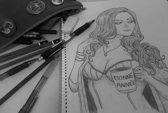 Pour ce dessin au départ je voulais faire quelque chose de complètement différent, tout en noir et blanc avec des grands aplats de noir. Et puis finalement, à force de faire, défaire et refaire, pour essayer d'avoir un dessin proportionné, je suis resté sur une illustration en niveaux de gris, aux crayons. La photo ne rends pas très très bien, mais le message principal est là: BONNE ANNÉE !