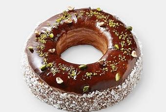 Le chef Cyril Lignac présente son Gâteau des rois. Le gâteau des rois est un Gâteau brioché à la fleur d’oranger, aux pistaches, fruits confits et zestes d’orange.