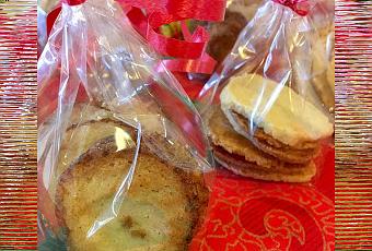 On mélange tout sans trop travailler la pâte. On forme des boudins de la taille désirée que l’on roule dans du sucre semoule puis on filme (on les enveloppe dans du film étirable) et on laisse reposer au réfrigérateur (pour que le beurre durcisse).
