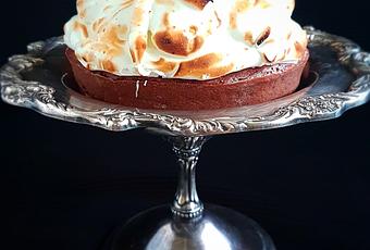 - توزع الميرانغ فوق البراوني ثم تحرق بواسطة مشعل المطبخ .
