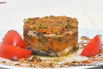 Une entrée qui va vous faire aimer la sardine en boite : mille-feuille de sardines en conserve et légumes confits. Un mélange de saveurs des plus délicieux.Pour ce faire, j'ai utilisé des sardines des Grands Chefs de la marque Les Trésors des Dieux : Citron confit et coriandre à l'huile d'olive.Si vous n'avez pas cette sardine au citron confit, vous pouvez utiliser des sardines ordinaires auxquelles vous rajouterez du citron confit coupé en petits dés ou un zeste de citron vert que vous râperez au-dessus des sardines.Les trésors des Dieux appartiennent à la Maison Gendreau, une conserverie plus que centenaire dont la devise est : Innover... par le goût et par l’emballage pour répondre à tous les instants de consommationEntre tradition et modernité, la Maison Gendreau, c’est l’imagination en boite !Vous pouvez réaliser cette recette avec un emporte-pièce en mille-feuille comme entrée ou en verrines pour un amuse-bouches.On peut bien sûr varier les légumes aussi en fonction des saisons ou en fonction des goûts.Je me suis inspirée d'une recette goûtée lors d'une soirée. La suite de la recette : cliquez ici