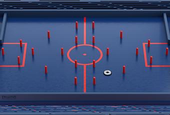 - On retrouve quelques caractéristiques du baby foot comme la forme général du jeu, le boulier pour compter les points et les lignes du terrain.