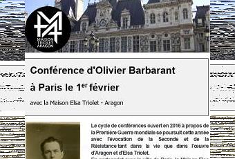 Maison ARAGON-TRIOLET Conférence d’Olivier Barbarant à Paris le 1er Février 2018