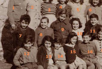 1 – Rosette Dauphin , Goure (c’est elle qui rédige le blog depuis fin janvier 2006) – 2 – Maryse Skocovitch , Jach – 3 – Eliane Pellegrin – 4 – Marie-Thérèse Aicard , dite Mimi – 5 – Julienne Martin , Allary, qui a fêté ses noces de diamant à Ampus le 6 août 2009 (à revoir en cliquant) . Elle habitait alors à la Combe-de-Magne et était l’aînée de la famille- 6 – Marie Pastorino , Lambert – 7 – Yves Roubaud , frère de France Roubaud ,Tosello – 8 – Claudette Riberti – 9 – André Kircher, il habitait à Abby où il était venu se réfiugier pendant la guerre – 10 – Lucile Bartoli, fille du postier . La Poste se trouvait alors dans le bâtiment de la mairie , au premier étage où se trouve l’accueil actuellement- 11 – Robert Paul, c’est un fervent chasseur – 12 – Paul Bousquet , époux de Marie Romana – 13 – Denise Charrier, soeur de Simone, Robert, Emile , Mireille, Henriette , Jean Claude et Roger (Emile et Roger sont décédés) – 14 – André Aicard , cousin de Mimi – 15 – Noëlle Bagarry, fille du boucher. Je l’ai revue à l’occasion des noces de diamant de Julienne. Je ne l’avais plus revue depuis notre enfance – 16 – Roger Martin , époux de Lucie Romana – 17 – Rosette Pellegrin, soeur d’Eliane. Leur mère tenait l’épicerie rue Klumanc , à gauche en venant de la mairie, avant le porche.
